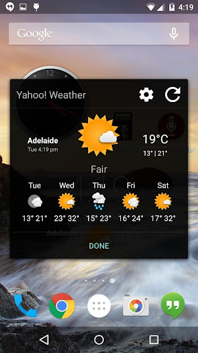 Weather is just a simple and stylish weather widget, based on CyanogenMod LockClock, which uses either Yahoo or OpenWeatherMap weather API for data. Also supports showing calendar events on the expanded widget.