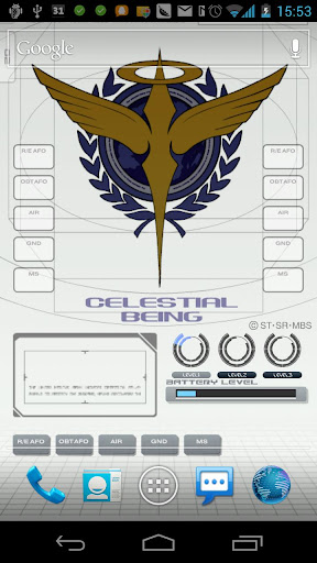 私設武装組織ソレスタルビーイングの象徴たるマークをモチーフに、時間と電池残量によって変化するクールな壁紙だ。