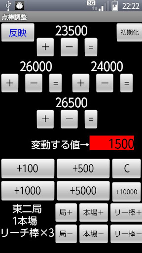 ・点数と場の状況を細かく変更できる調整機能(これにより、チョンボやハウスルールにも対応可能です)