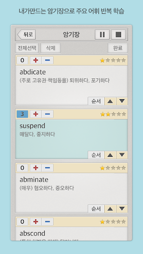 - 모든 단어의 출제 빈도를 ★을 활용해 5단계로 제시