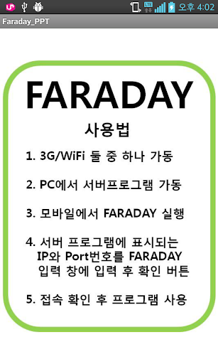※ FARADAY_PPT는 서버 프로그램을 필요로 합니다.