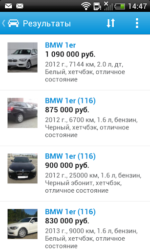 - поиск по параметрам: марка, цена, пробег, год выпуска и другим;