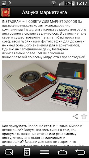 Устанавливайте приложение “Азбука маркетинга”. Делитесь с друзьями в социальных сетях: Вконтакте, Facebook, Twitter или e-mail. Сохраняйте все самое интересное в Избранном!