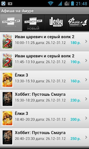 Афиша-на-Амуре приложение которое содержит в себе расписание крупных кинотеатров г. Комсомольска-на-Амуре. Красный, Ucity и Факел