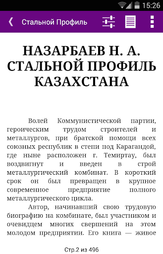 Компания ALMA Cloud по заказу Государственного Учреждения "Библиотека Первого Президента Республики Казахстан - Лидера Нации" разработала данное мобильное приложение, которое представляет собой Мобильную библиотеку полностью состоящую из книг написанных лично Первым Президентом Республики Казахстан - Лидером Нации Н. А. Назарбаевым.