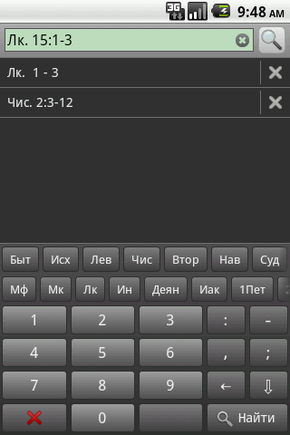 В состав приложения также включен перевод Библии на русский язык для возможность параллельного чтения.