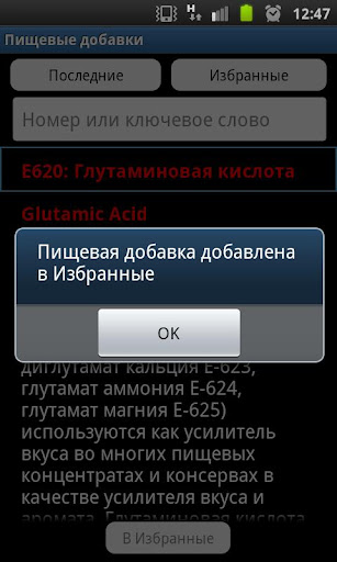 Возможен поиск по номеру Е-добавки (например: E300), по русскому названию добавки (например: Кантаксантин) и по английскому названию добавки (например: Paprika Oleoresins). Также имеются некоторые дополнительные функции: например, возможность добавления Е-добавок в "Избранные".