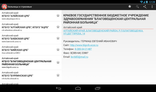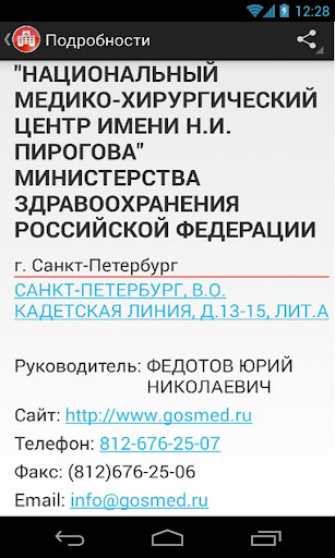 Найти учреждение на карте теперь можно очень просто, достаточно нажать на адрес в карточке больницы. Аналогично для отправки письма и для звонка на телефонный номер организации.