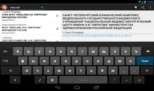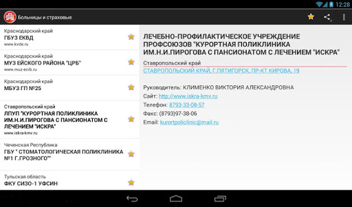 Карманный справочник лечебных учреждений российской федерации. Работает без интернета. Помимо больниц и поликлиник в приложении представлены так же страховые организации и фонды ОМС РФ.