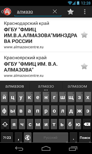 Так же реализован мгновенный поиск и поиск голосом. Для большее удобства доступно избранное.