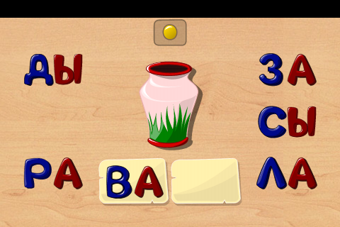 Составляем простые слоги. Детям в игре предоставлена возможность конструировать простые слоги (слоги слияния, пример ла, ко, ри) из гласных и согласных букв и слышать как они читаются. Это очень важное упражнение, так как путь от знания букв до умения складывать их в слоги, а дальше в слова, бывает довольно долог и не прост. В игре ребенок может запомнить как выглядит слог целиком и понять как он получается из букв. Есть также игры на поиск слогов и на составление называемого слога.