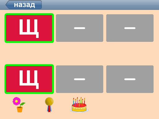 * Игра на запоминание – веселая игра на запоминание букв. Все карточки закрыты, нужно найти пары, открывая только одну карточку за раз.