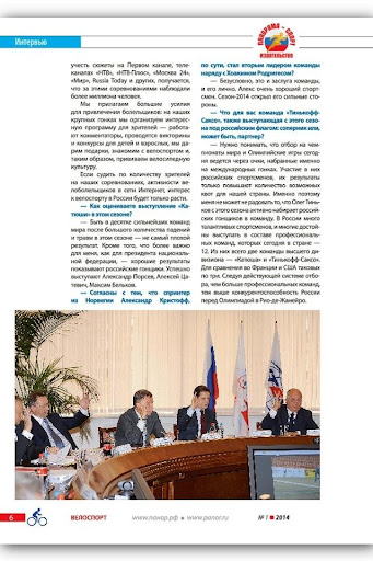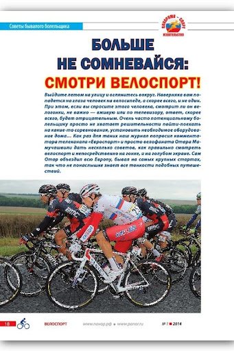 Первые официальные соревнования по велосипедному спорту состоялись в 1869 году во Франции, пробег дистанцией 120 км проходил между Руаном и Парижем. Велосипеды участников тогда были деревянными. Спустя почти полтора столетия технологии производства велосипедов едва отстают от космических, как и производство сверх обтекаемых комбинезонов и шлемов гонщиков. Рейтинги шоссейных «гранд-туров» — Вуэльты, Джиро д’ Италия и Тур де Франс — с каждым годом покоряют новые телевершины. Тур де Франс — 2014 станет 101‑м в истории (!), растянется на весь июль и 3656 км (стартует в Англии, заденет Пиренеи и финиширует на Елисейских Полях) — гурманам и профессионалам будет на что посмотреть. Российским велосипедистам пока трудно претендовать на большее, нежели победа на отдельных этапах, и тем не менее наша «Катюша» по‑прежнему в строю. Подписавшись на журнал «ВЕЛОСПОРТ», вы всегда будете в курсе новых технологий и тенденций развития велосипедного спорта.