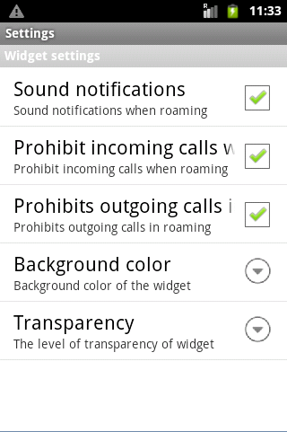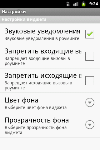Виджет роуминга представляет собой виджет размером 1x2, который режиме реального времени показывает: