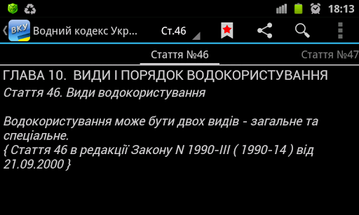 Програма Водний кодекс України містить повну версію Водного кодексу України зі всіма змінами та доповненнями.