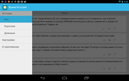 В нашем приложении вы найдете смешные истории, истории о любви, истории о сексе, грустные истории, истории на любой вкус!