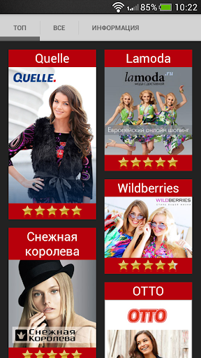 «Все магазины одежды» это приложение создано в виде справочника по интернет-магазинам одежды и обуви рунета.