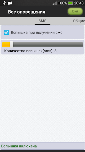 3. Регулировка количества вспышек при получении SMS
