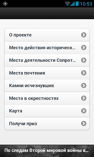 Наиболее важным результатом проекта является приложение для мобильных телефонов, которое проведёт желающих по более или менее известным местам в Праге 8, связанным со Второй мировой войной. Речь идёт об исторических местах, разделённых на категории: Место действия исторических событий, Места деятельности Сопротивления и подпольной деятельности, Места почтения и Камни исчезнувших.