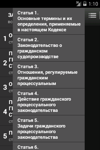 После открытия статьи в главе навигация между другими статьями в этой же главе осуществляется с помощью перелистывания.