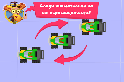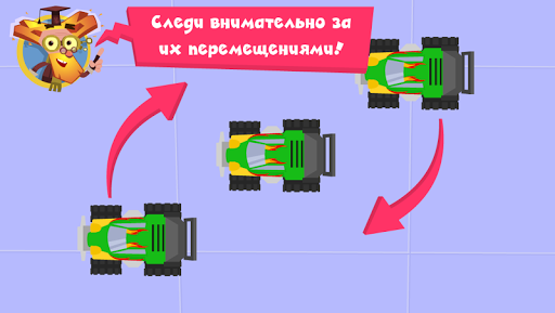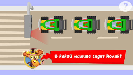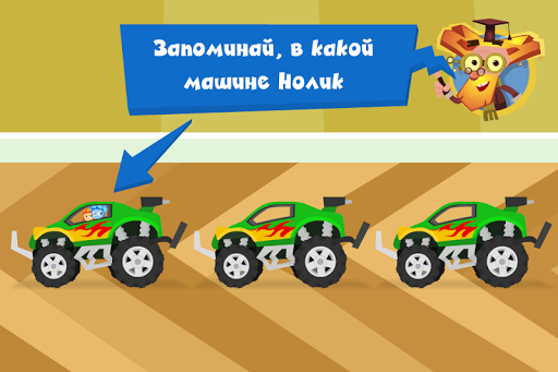 По экрану перемещаются игрушечные машинки, быстро меняя свое расположение. В одной из них сидит фиксик по имени Нолик. Юным игрокам предлагается потренировать внимание, наблюдательность и зрительную память – надо уследить за перемещениями автомобильчика и указать машинку с фиксиком.