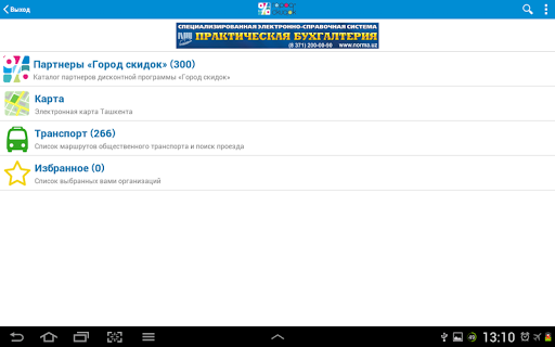 Для владельцев дисконтных карт с логотипом «Город Скидок» разработан удобный и эффективный ресурс – мобильное приложение каталога партнеров по городу Ташкент. Для Вас всегда актуальная информация и в удобной форме.