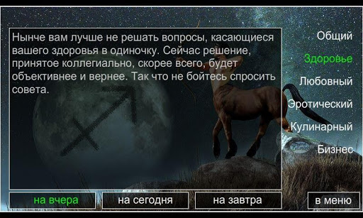 Приложение содержит 6 ежедневно обновляемых гороскопов: