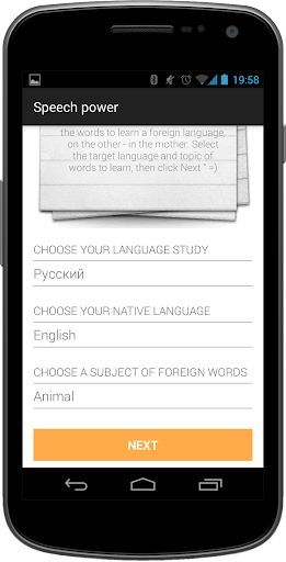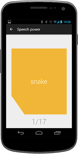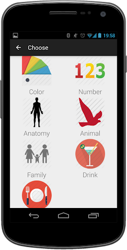 Слова приходят порциями по категориям (семья, цвета, числа и цифры, животные и другие категории) в виде карточек (изучение по принципу FlashCards, аналогично многим приложениям, например, LinguaLeo), на одной стороне карточки написано слово на иностранном языке, на другой - на родном языке. Чтобы перевернуть карточку, кликните по ней