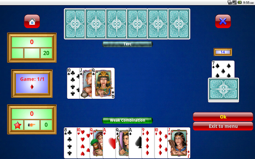 Интеллектуальная карточная игра "Деберц", рассчитанная на двоих игроков. В платной версии, сыграв 10 конов при хорошем счёте игрок попадает в таблицу чемпионов, в бесплатной - счёт не сохраняется. Программа позволяет выбрать на свой вкус колоду карт, рубашки и фон игрального стола. Звуковое сопровождение, оригинальное сохранение счёта.