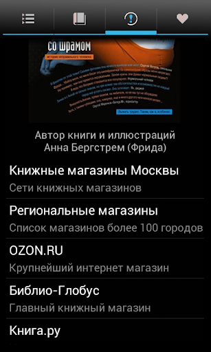 Приложение не требует доступа в Интернет - работает вне сети. В нём вы так же найдёте информацию о всех книжных магазинах России, где продаётся этот роман.