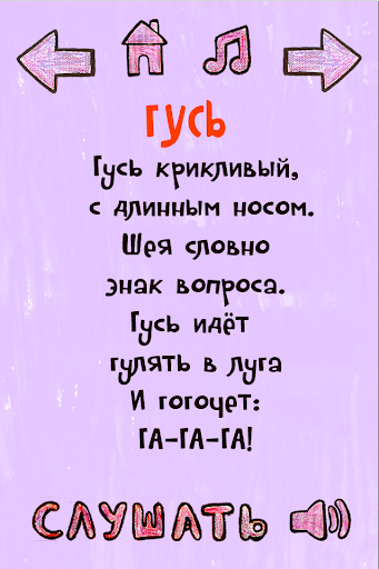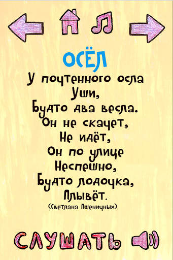 Приложения «Детские стихи о животных» сформируют у ребенка представление о том как животные выглядят, какие звуки произносят, какой у них характер. Приложение будет интересно малышам от одного года, вы можете самостоятельно читать стихи или включить ребенку аудиозапись.