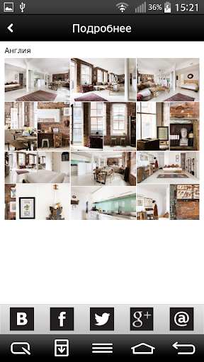 Устанавливайте приложение “Дизайн интерьера”. Делитесь с друзьями в социальных сетях: Вконтакте, Facebook, Twitter или e-mail. Сохраняйте все самое интересное в Избранном!