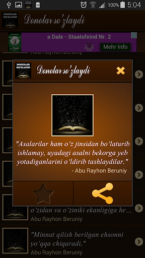 Ушбу илова буюк донишмандлар фикрлари ва ўгитларини сизнинг андроид мобил қурилмангизда доим сизга ҳамроҳ бўлишини таъминлаш мақсадида яратилди.