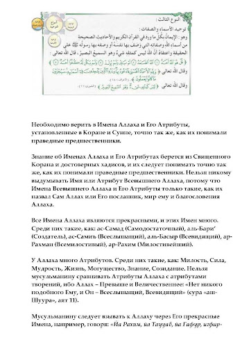 Настоящее учебное пособие посвящено главному и важнейшему столпу Ислама — единобожию. Уникальность и новизна пособия состоит в том, что впервые на русском языке оно адресовано детям и их родителям. Цель пособия, рассчитанного на шесть лет обучения, заключается в формировании у детей основ единобожия и вероубеждения. Структурно каждая книга пособия состоит из уроков, содержащих основной текст рассматриваемой темы, тематический словарь, комментарии, практические упражнения и задания для повторения. Поскольку перевод на русский язык сопровождается параллельным арабским текстом, материал пособия может быть использован для изучения арабского языка как в системе дополнительного обучения, так и самостоятельно.