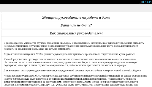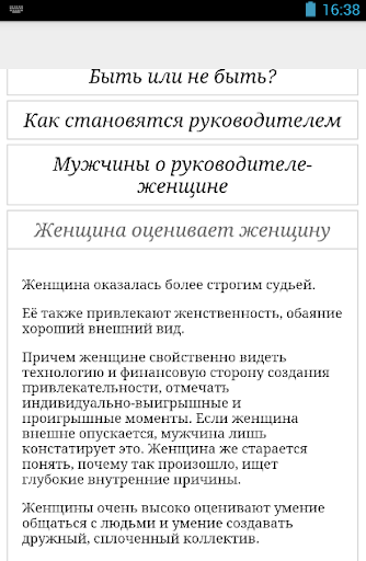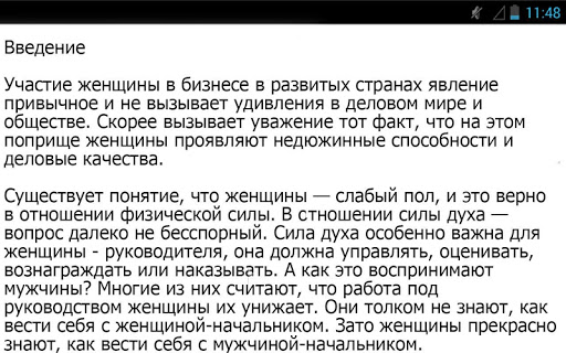 Существует понятие, что женщины — слабый пол, и это верно в отношении физической силы. В отношении силы духа — вопрос далеко не бесспорный. Сила духа особенно важна для женщины - руководителя, она должна управлять, оценивать, вознаграждать или наказывать. А как это воспринимают мужчины? Многие из них считают, что работа под руководством женщины их унижает. Они толком не знают, как вести себя с женщиной-начальником. Зато женщины прекрасно знают, как вести себя с мужчиной-начальником.