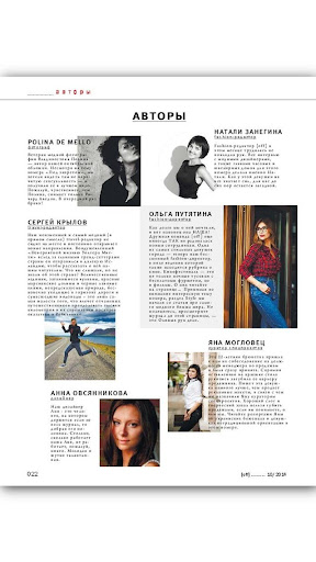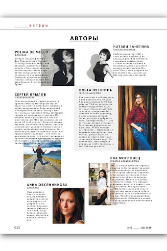 Авторами и героями журнала становятся известные персоны, которые ведут схожий с читательским образ жизни – благодаря чему на страницах журнала публикуются именно те материалы, которые действительно получают резонанс.