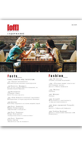 Журнал [off] удерживает баланс между актуальным и вечным, освещая в равной степени стиль, фитнес, карьеру, отношения, экономику и является, помимо путеводителя по красивой жизни, также и авторитетным общественно-политическим изданием города.
