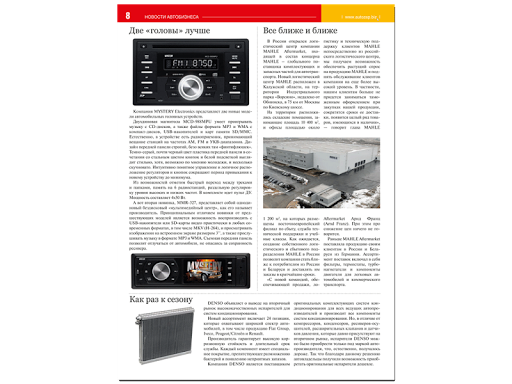 • освещаются новинки мирового и отечественного сектора производства автокомпонентов и аксессуаров, масел, автохимии, шин, дисков, электроники, мультимедийного и навигационного оборудования;