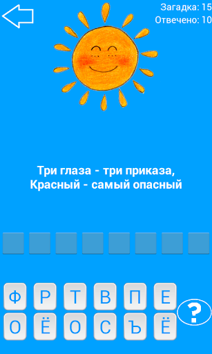 Каждый уровень - новая загадка. Ответ на каждую загадку нужно собрать из предложенных букв. Загадку можно пропустить, получив на нее ответ.