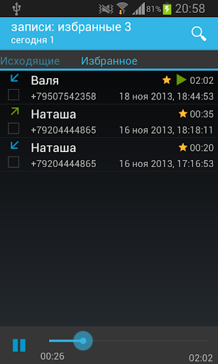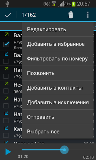 - Возможность записывать/не записывать конкретных абонентов (список исключений в настройках) (Только в полной версии приложения)
