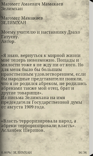 Зелимхан встал на путь абречества не из-за своего злого каприза, нет! Его вынудила к этому прежде всего несправедливость царских чиновников. Обращаясь к депутатам Государственной думы в январе 1909 года, он прямо пишет: «Для меня было бы большим нравственным удовлетворением, если бы народные представители знали, что я не родился абреком, не родились ими также мой отец, брат и другие товарищи». Скажу прямо, я никогда не видел в Зелимхане революционера с определенными идейными взглядами, не видел даже и идеального человека, чуждого корысти и мирских грехов. Наоборот, как и всякий человек, живший такой бурной и сложной жизнью, он совершил немало ошибок, добра и зла. Но при внимательном изучении жизни Зелимхана обнаруживаешь, что под обличием неукротимого бунтаря и разбойника скрывалась нежная чувствительная натура, совершавшая порой по-детски наивные поступки. Зелимхан никогда не расставался с трудом, он пахал и сеял, сам содержал скот, был щедрым и отзывчивым к людям. Но в минуту опасности его крупное, добродушное рабочее лицо выражало лишь решительность и суровость.