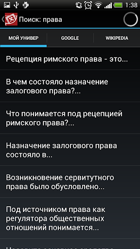 Ответ на любой вопрос по Римскому праву: более 500 ответов на тесты вузов, а также мета-поиск ответа на твой вопрос в Google и Wikipedia. Список поисковых сервисов постоянно расширяется.