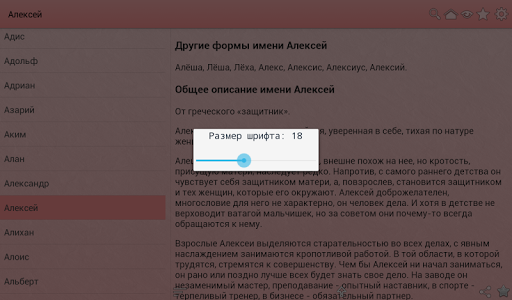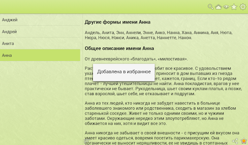 С помощью данного приложения вы узнаете подробно: значение и тайну имени, о характере, в некоторых описаниях: о влияние на судьбу, а так же совместимость имени с другими именами, и другие не менее интересные данные.