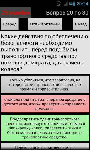 После того как вы ответили на все вопросы и нажмите на кнопку с тестом на конце, или закончится время, приложение скажет вам ли вы прошли или не прошли тест, и некоторые ошибки были вы, и где именно, и поэтому правильные ответы, в которых вы ошиблись.