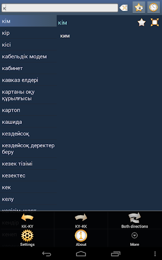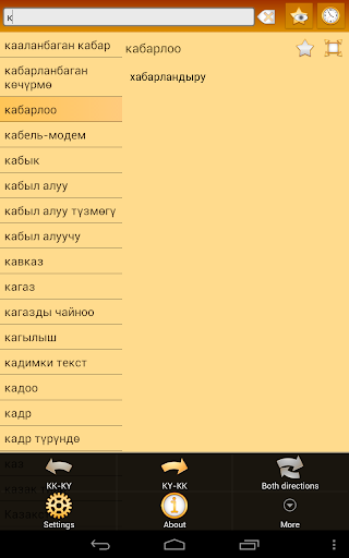 Это Кыргызско-Казахский и Казахско-Киргизский Словарь. Приложение работает в режиме ОФФЛАЙН и не требует интернет-соединения для работы.