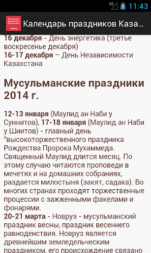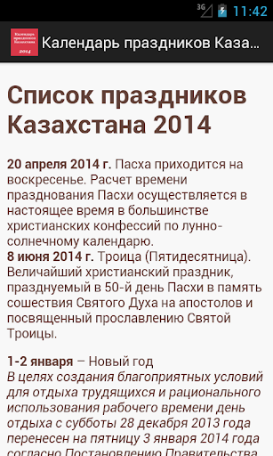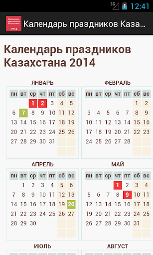 Приложение "Календарь праздников Казахстана 2015" - это список всех праздников Казахстана за 2015 год. Календарь и список праздников по месяцам.
