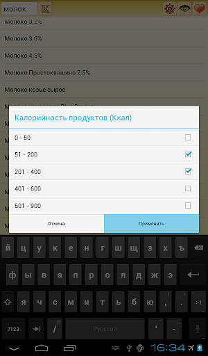 Для быстрого поиска можно задействовать фильтр, с помощью него, можно легко найти продукты с необходимым составом, что удобно при составлении своей диеты или таблицы калорийности.