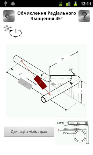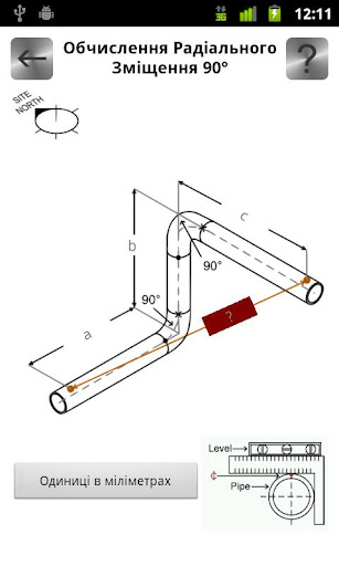Введіть необхідний кут і виміри А і В, які потрібні для встановлення труби, і Програма обчислить