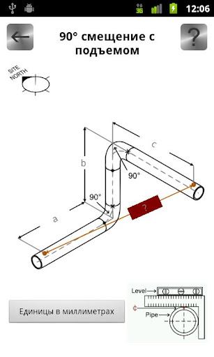 Введите необходимый угол вместе с размерами A и B необходимые для установки трубы, и