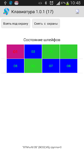 - выполнять команды "Взять под охрану" и "Снять с охраны" для одного или группы шлейфов;